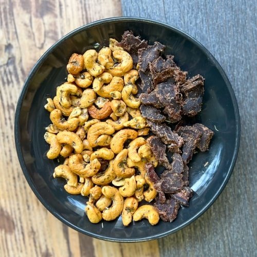 Om deze snack te maken, hebben we onze eerlijke biltong gebruikt samen met geroosterde cashewnoten die de geweldige smaak van 6 verschillende kruiden hebben. Probeer iets nieuws en geniet van de frisse smaak van deze geweldige snack.