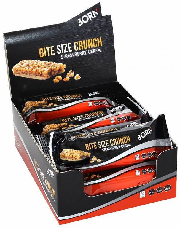 Naast een BORN energiedrank, zorgt BORN BITESIZE voor de aanvulling van de benodigde koolhydraten. Lekkere handzame reep van 30 gram met rijstcrisps en vruchten omhuld met een heerlijke coating. BORN BITESIZE geeft je voldoende energie, compact en lekker.