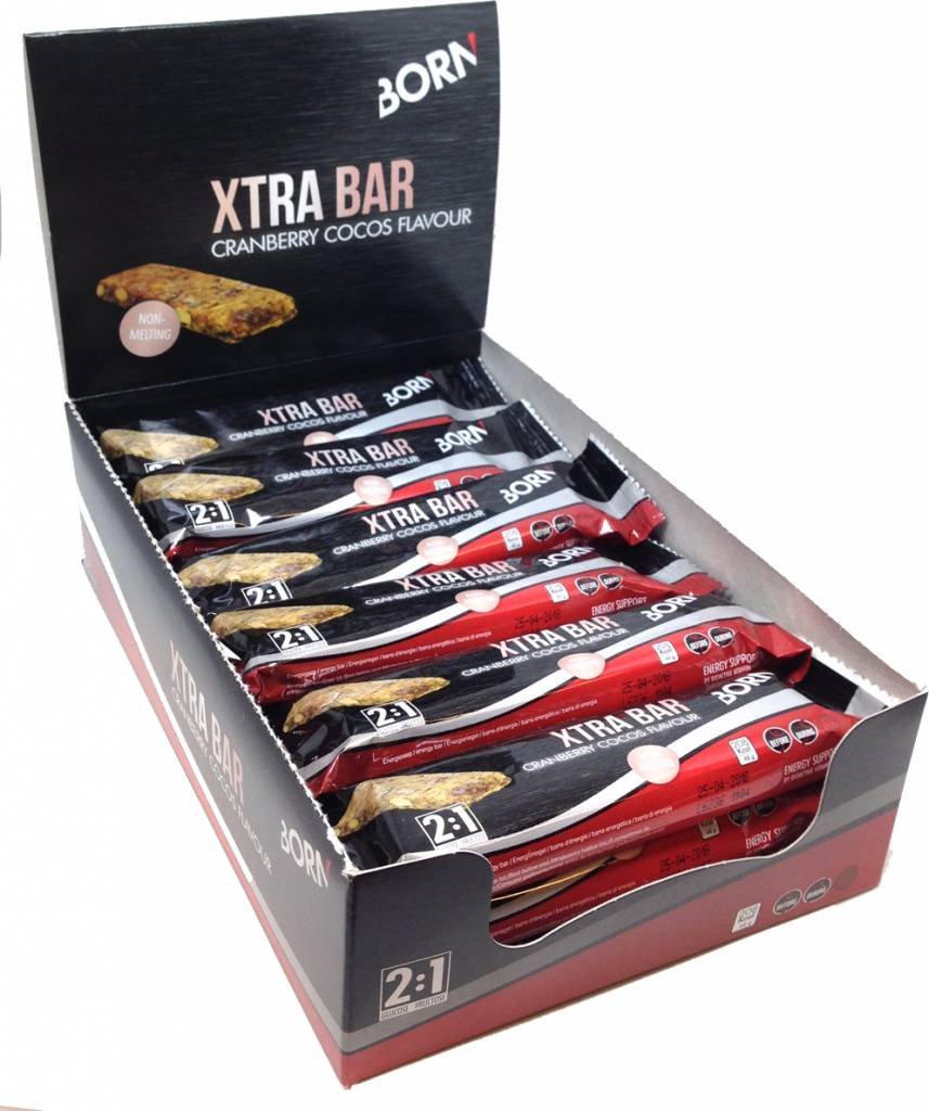 BORN XTRA BAR CRANBERRY/COCOS is een energiereep met een heerlijke smaakmix van cranberry en cocos. Deze energiereep heeft de ideale 2:1 glucose/fructose verhouding, waardoor je per uur meer koolhydraten kunt opnemen tot wel 90 gram per uur. Ontwikkeld en getest in samenwerking met Team Sunweb.
