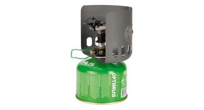 Handig windscherm dat op elke gas cartridge kan worden geklikt. Daardoor wordt het brandstofverbruik beduidend minder.