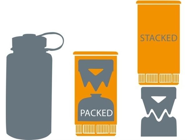 Het Jetboil Flash systeem steekt u aan met een klik op de knop en in iets meer dan 2 minuten heeft u twee kopjes kokend water voor cacao, koffie, instant soep of een lekkere gevriesdroogde maaltijd. De Jetboil Flash is brander en beker ineen, waarmee u onderweg eenvoudig, snel en veilig een maaltijd of warme drank kan koken. Het nieuwe ontwerp van de brander beschermt de piëzo en zorgt dat deze niet beschadigd tijdens het transport. De pan klikt vast aan de brander en de driepoot zorgt voor extra stabiliteit tijdens het koken. De temperatuur indicator op de neopreen hoes geeft aan wanneer het water warm genoeg is om thee of koffie te maken. Op deze manier bespaart u gas omdat het water het kookpunt niet hoeft te bereiken. De pan is af te sluiten met een kunststof deksel die meteen dienst kan doen als drinkdeksel zodat u zonder morsen kunt drinken. Wanneer u klaar bent met koken, bergt u de brander, gasblikje, eventueel pandrager en stabiliserende voet netjes op in de 1 L beker.
