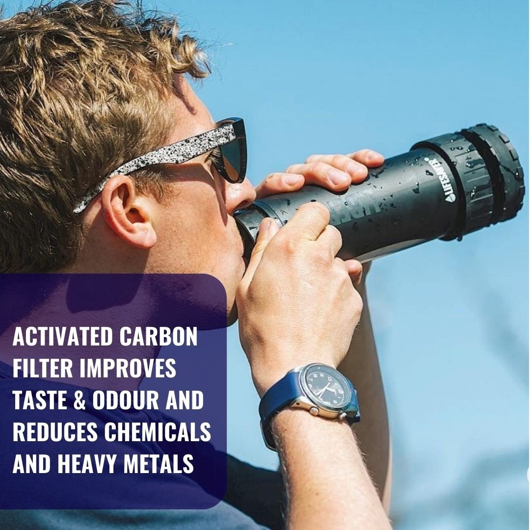 Bevat een vervangbare actieve koolschijf voor de reductie van chemicaliën en zware metalen en het verwijderen van slechte smaak en geur, effectief voor maximaal 100 liter. Onze standaard actieve koolschijven die in alle LifeSaver-producten worden gebruikt, zijn getest om uitstekende en consistente zware metalen en chemische reductie voor hun aangegeven levensduur bij een reeks monsterverontreinigingen zoals chloor, lood, nikkel en cadmium. Onderweg de smaak en geur verbeteren.