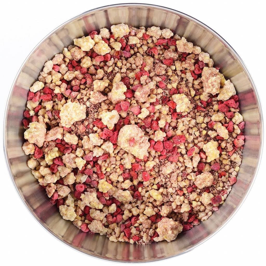 organische gierst ** 68%, biologische kokosmelk ** 24%, organische agave siroop ** 5%, organische gevriesdroogde frambozen * 2%, organische gevriesdroogde aronia poeder *