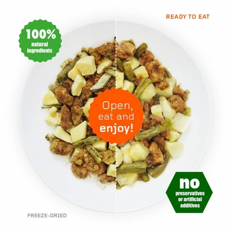 Een luxe schotel met varkenslende in een pepersaus. Koken voor vriesdrogen – LYO FOOD heeft een unieke technologie ontwikkeld, die is gebaseerd op het koken van maaltijden voor vriesdrogen – net als een normaal gerecht wordt bereid. Het resultaat is de echte smaak van een zelfgemaakte schotel. Dit is de reden waarom LYO maaltijden zo goed smaken.