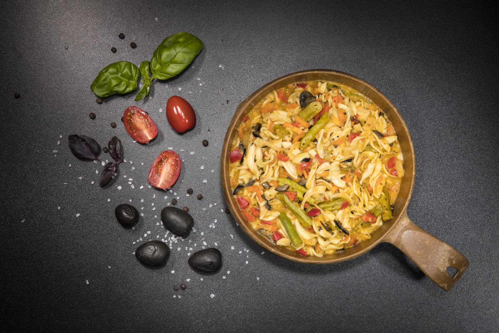 A healthy pasta with many vegetables, natural taste and a high calorific value, serves as a good alternative to meat dishes. 100% natural, without preservatives and additives.