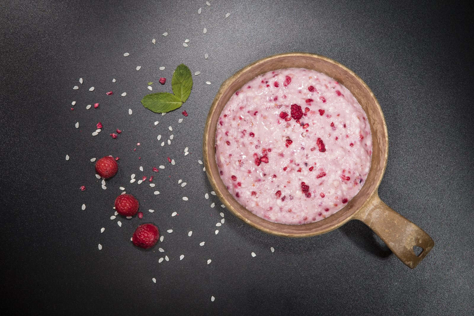 A delicious breakfast with 10% crushed raspberries. Energy-rich and sweet porridge, which gives strength to begin the day. 100% natural, without preservatives and additives.
