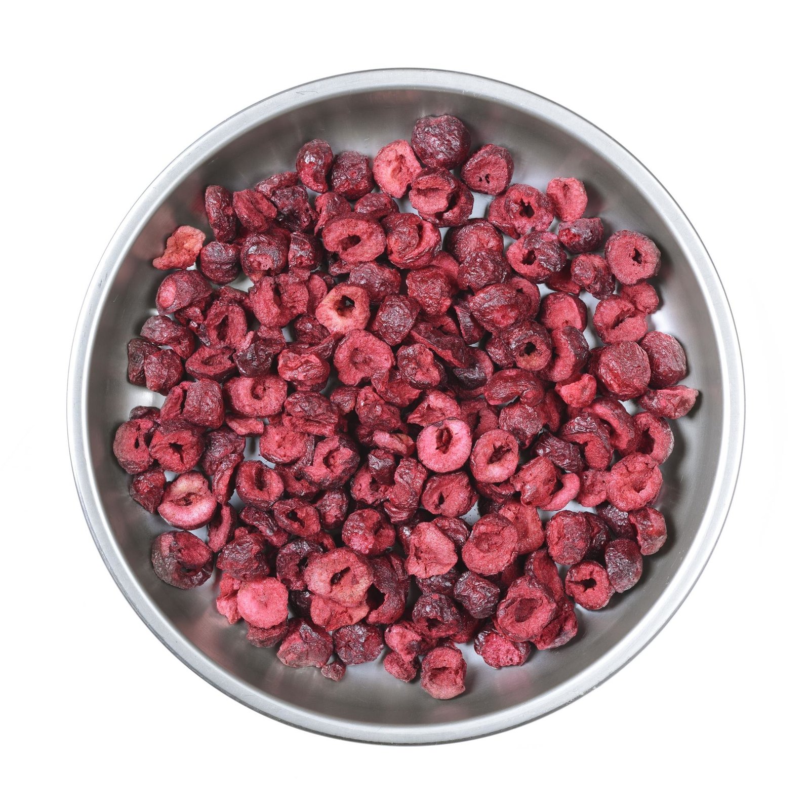 Pitloze, rijpe en in plakjes gesneden zure kersen worden gevriesdroogd, behouden hun zoetzure smaak en krijgen een ongelooflijke crunch. Ze zijn perfect als toevoeging aan je ochtendhavermout, als dessertdecoratie of als smoothie-ingrediënt.