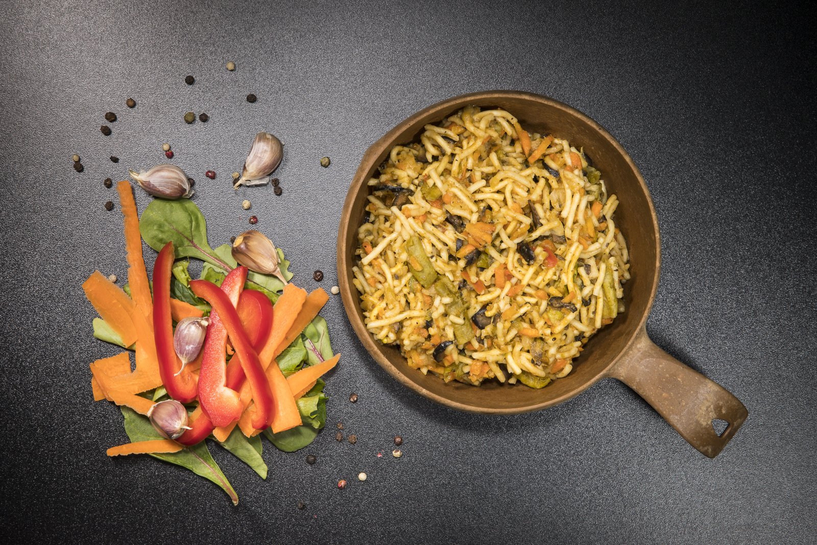 Vegetable-noodle wok is specially developed for vegans, but will surely be appreciated by meat lovers. Although the dish itself is 100% vegan, it contains a lot of necessary nutrients and has a high calorific value, which provides you with sufficient energy even for the most difficult hikes.